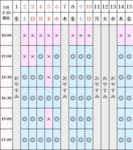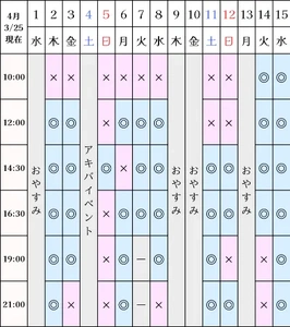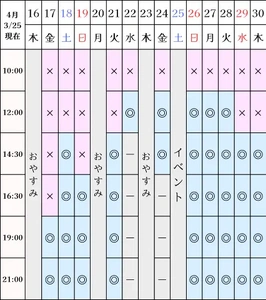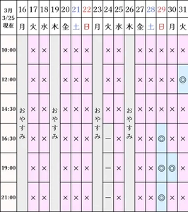 空き状況(3/25現在)
