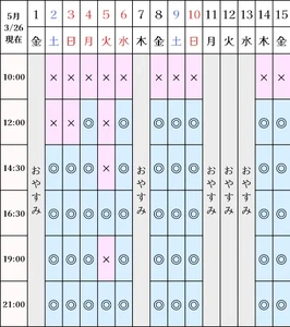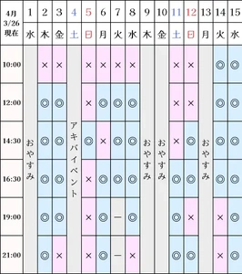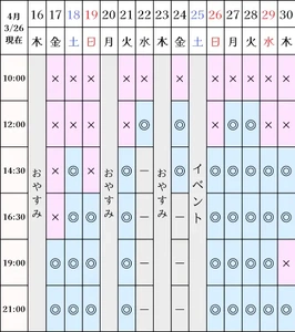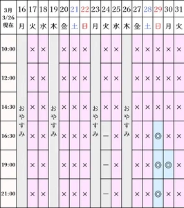 空き状況(3/26現在)
