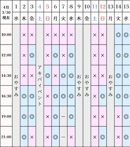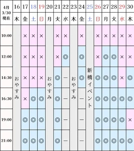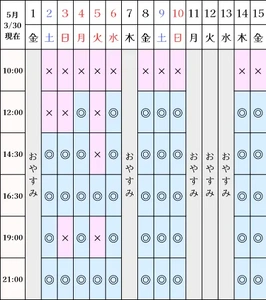 空き状況(3/30現在)