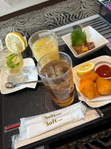 オーシャンビューのホテルでお酒を乾杯