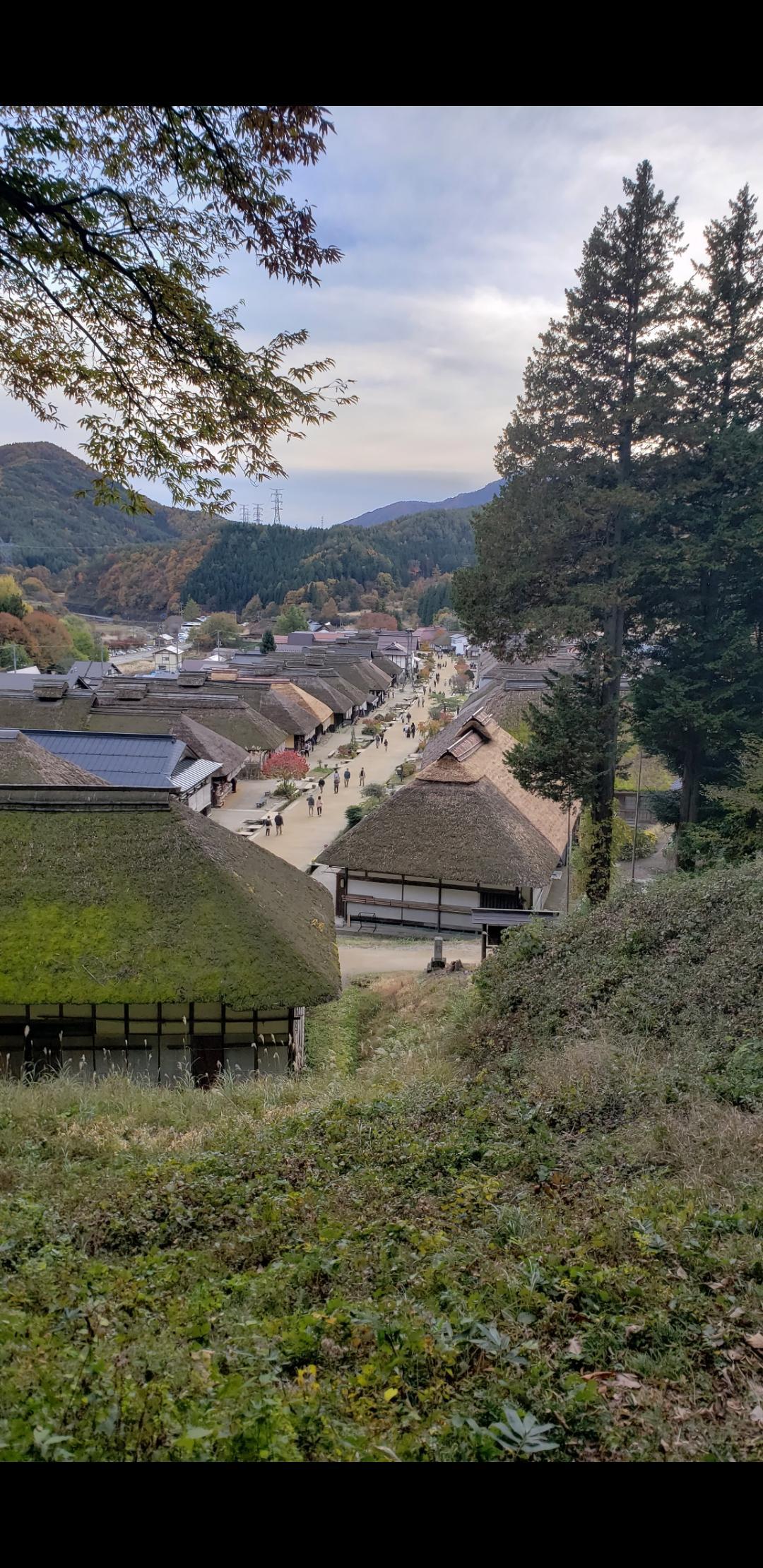 車窓から見える峠の絵画の様な山の紅葉、茅葺き屋根の町並みにうっとりした【ちなつ】...(’-’*)🍁✨✨✨