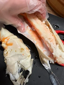からが剥かれた冷凍カニを使用して