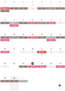 ピンクのところは出勤予定日、茶色のはリクエスト可能日になります!