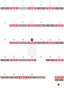ピンクのところは出勤予定日、茶色のはリクエスト可能日になります!