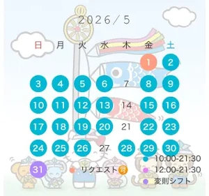 5月のシフト載せておきますね